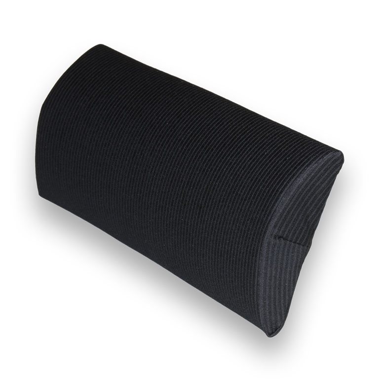 Ett litet enkelt svankstöd . Fastsättning med resårband. Överdrag av svart manchester.